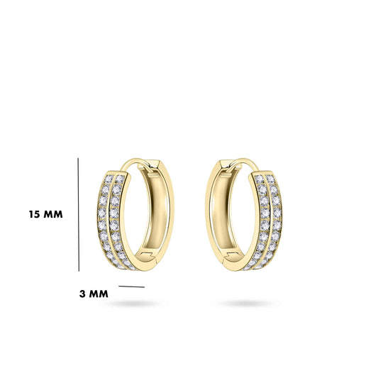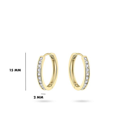 Hoops Oorbellen | 14k goud | 2 x 15 mm | Bezet met Zirkonia Steentjes